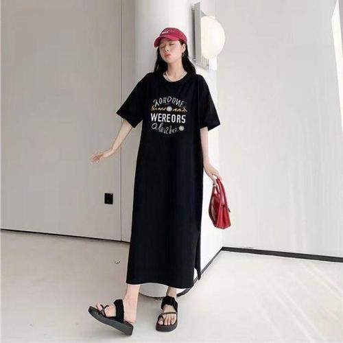 후암마켓 86 레빗 프린팅 박시한 반팔 롱 빅사이즈 옆트임 원피스