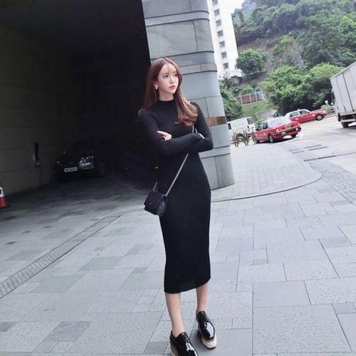 [셀럽하우스]슬림 IPQJ3971 반폴라 니트 페미닌니트원피스 가을니트원피스
