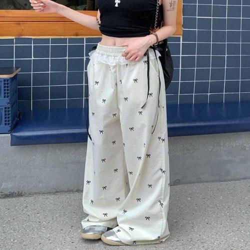 발레코어룩 하이웨스트 와이드핏 여자 밴딩바지 리본 WFKBXGW