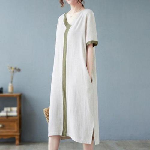 여성용 배색 루즈핏 롱원피스 데일리 캐주얼 면소재 여름 나그랑 WFLLPZY