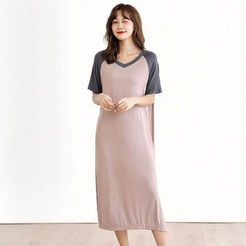 [셀럽하우스]브이넥 XKZS8129 면 홈웨어 원피스 루즈핏 브이넥원피스 배색원