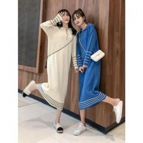 [셀럽하우스]배색 IPMF6245 목폴라 니트 롱 원피스 캐주얼 루즈핏