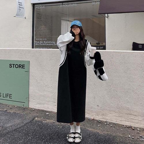 [셀럽하우스]배색 NWEV7299 캐주얼 롱 오버핏 원피스 데일리 편한