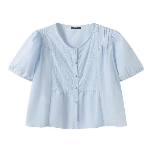 [GGPX]데일리 자수 레이어드 벌룬 반팔 블라우스 (GQBBA010D)