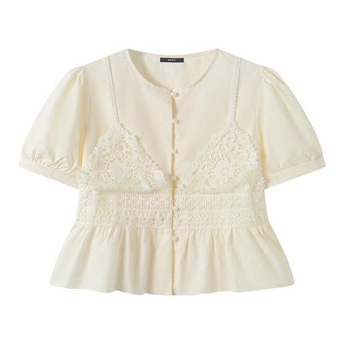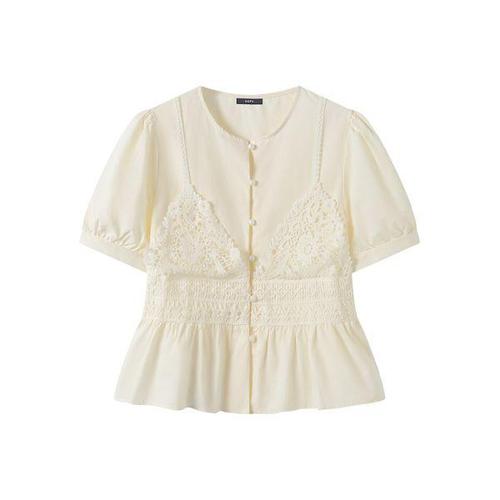[지지피엑스]러블리 벌룬 레이스 포인트 리본 블라우스 (GQABA004D)