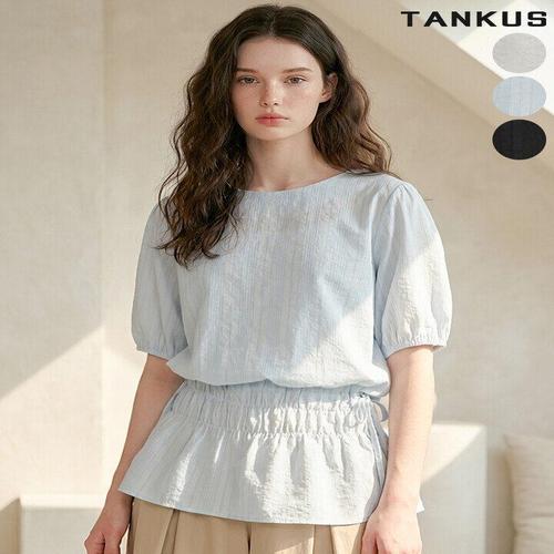 [탱커스]여성 벌룬 셔링 디테일 라운드 블라우스