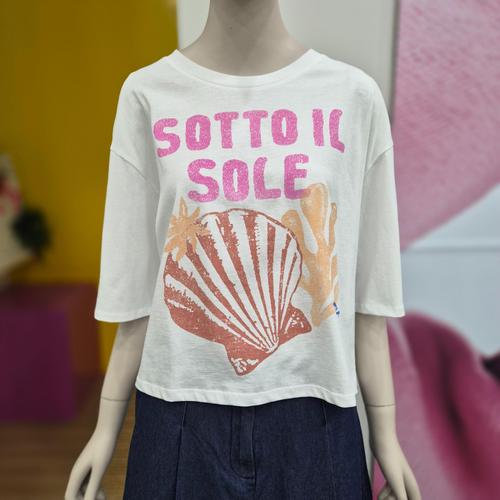 [베네통]베네통 프린팅 칠부 티셔츠 BATSB1631 WH_DJ