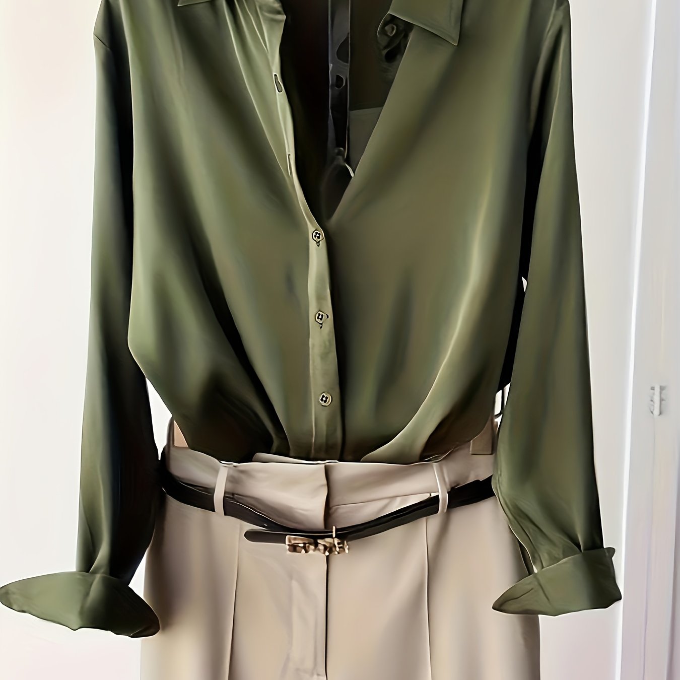 TEMU 우아한 빈티지 라佩l 단색 앞단추 긴팔 셔츠, 캐주얼 출퇴근, 사무실, 데일리웨어, 봄가을용