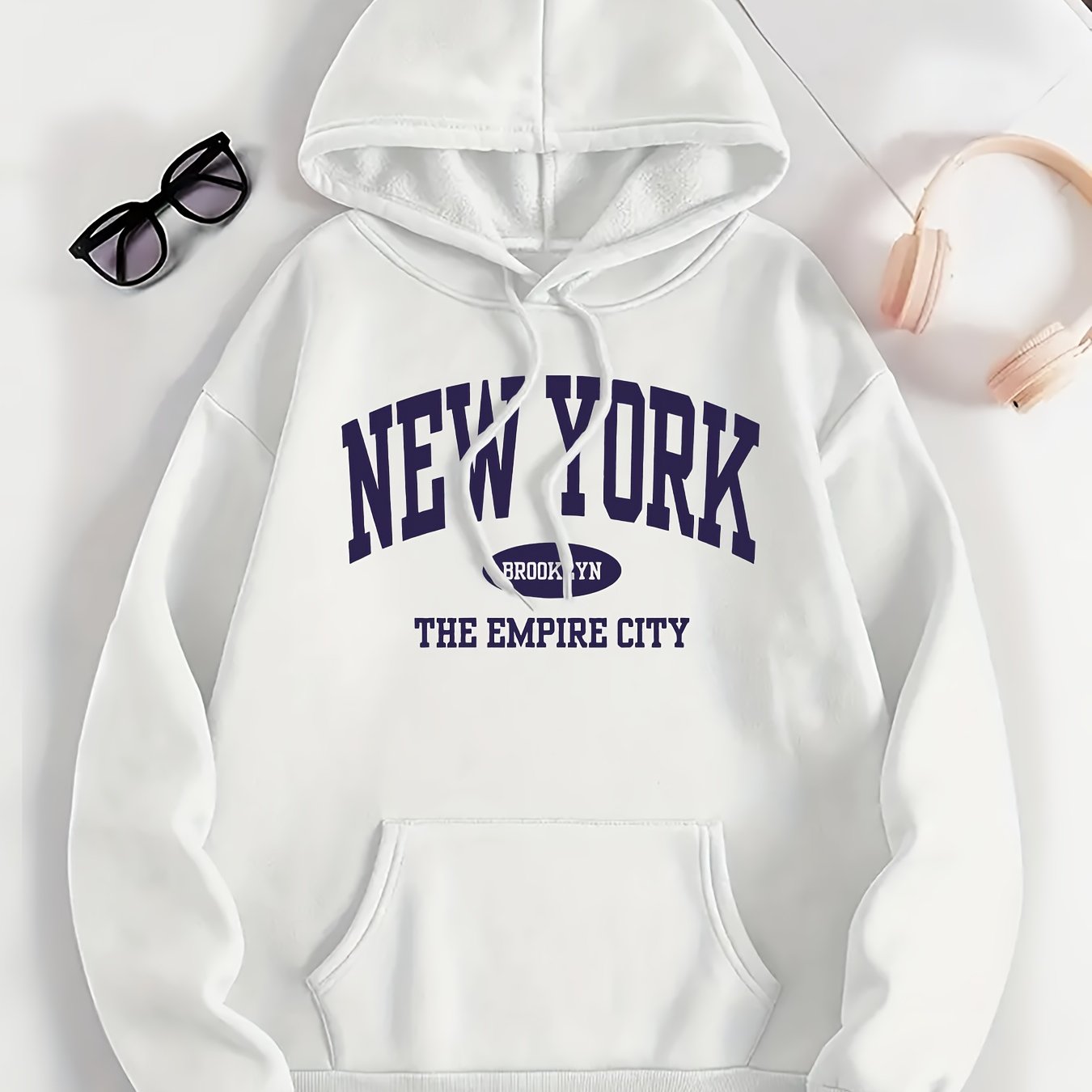 TEMU 1pc 여성용 플러스 사이즈 후디 - 캐주얼 폴리에스터 풀오버, 약간의 신축성, 니트 원단, 후드 칼라, 겨울 위치 패턴 - 뉴욕 브루클린 더 시티