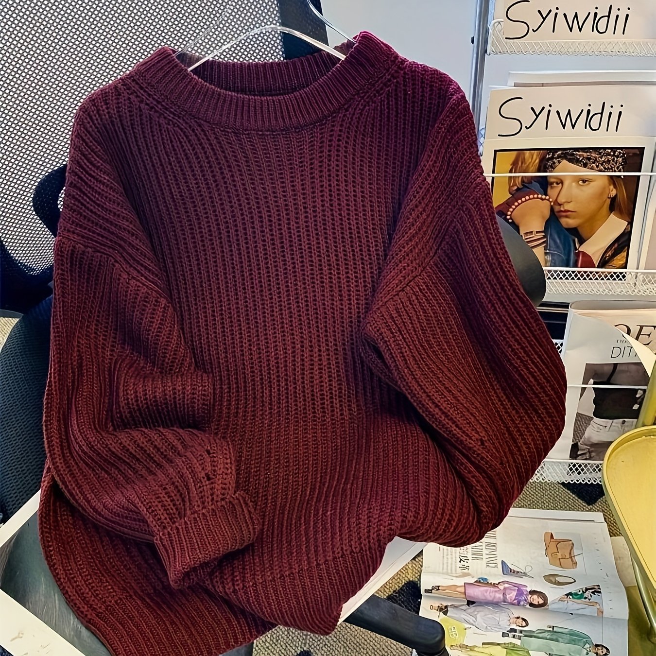 TEMU 2025년 가을 겨울 신상 청키 빈티지 루즈핏 캐주얼 스웨터, 가을 겨울 시즌에 완벽한 선택, 우아한 여성용 라운드넥 긴팔 부드러운 세탁기 사용 가능