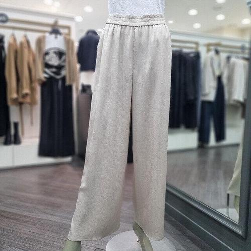 [샵앤]데일리 여성 여름 밴딩 무지 통 배기바지 면 와이드팬츠 AMI-WPT-3370-진베이지