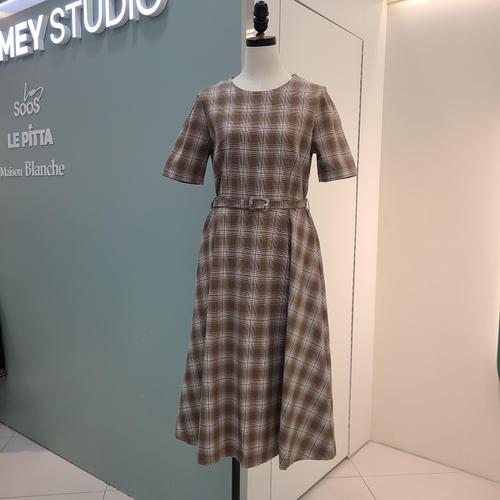 [수스]벨티드체크라운드원피스 S262BOP503/베이지,블랙_YS