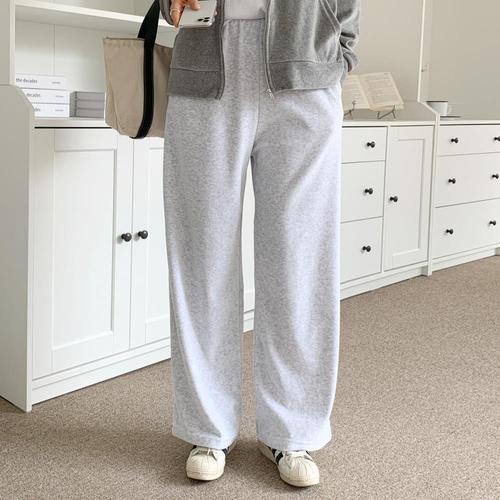 [옷자락]여자 허리밴딩 벨벳 코튼 일자 팬츠