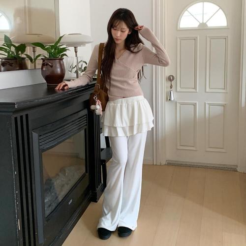 [옷자락] 여자 벨벳 캉캉 플레어 밴딩 치마바지