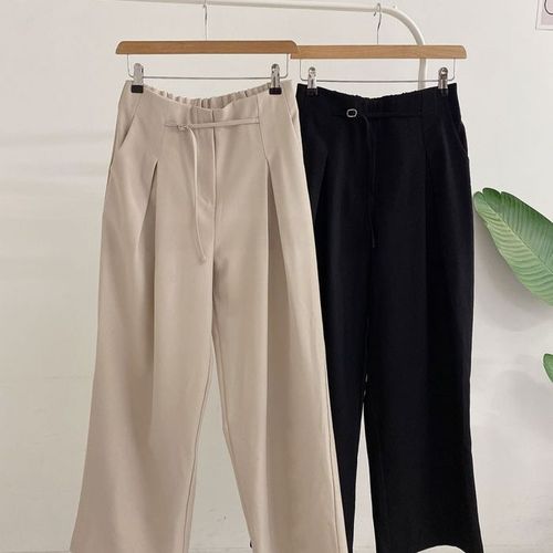 로다주 벨트 핀턱 와이드 뒷밴딩 슬랙스 팬츠(2color)