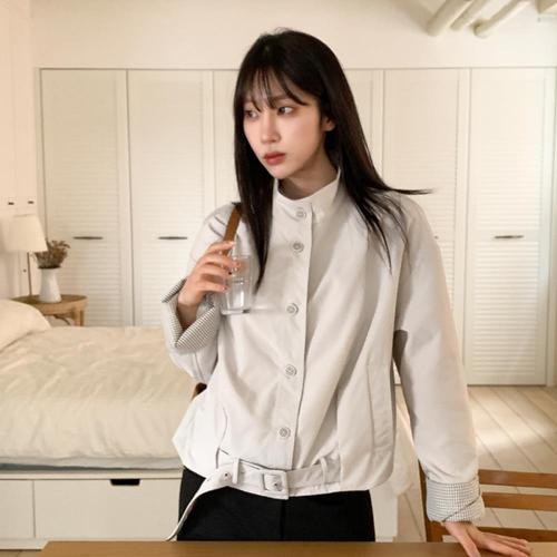 [보니제이]하이넥 벨트 숏 트렌치 자켓 봄 신상 여리핏 케이프