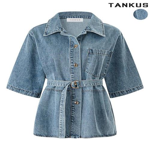 [탱커스]여성 5부 소매 데님 벨트 자켓형 셔츠