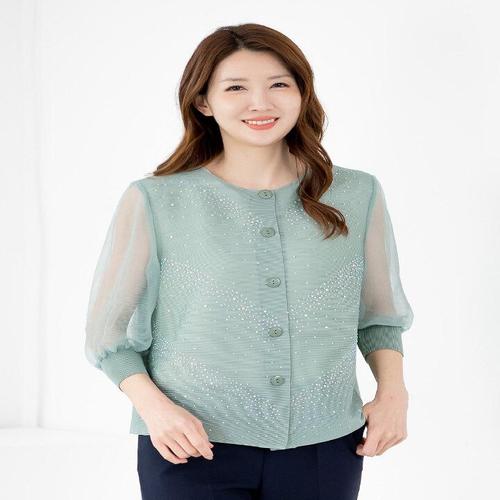 [모슬린]엄마옷 자켓 플리츠 볼레로 7부 줄기장미 MQG126959 마담 미시 중년여성 빅사이즈 할머니옷 50대..
