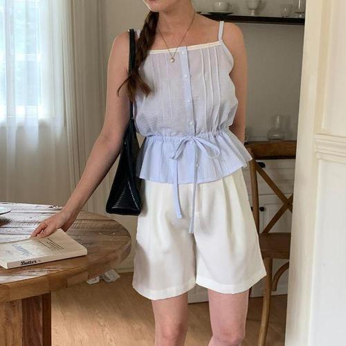 [옷자락]여자 드로우코드 SS 잔주름 가슴 브라탑 데일리 끈나시
