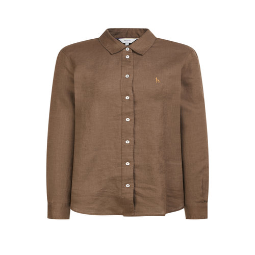 헤지스 여성 [아이코닉] 레귤러핏 린넨 셔츠 브라운 (HSSH6BC30W2)