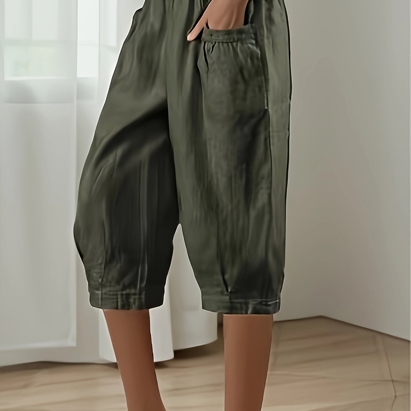 TEMU 여성 캐주얼 패션 다용도 탄성 허리 솔리드 컬러 편안한 봄/여름 모델 슬림 피부 커버 크롭 팬츠