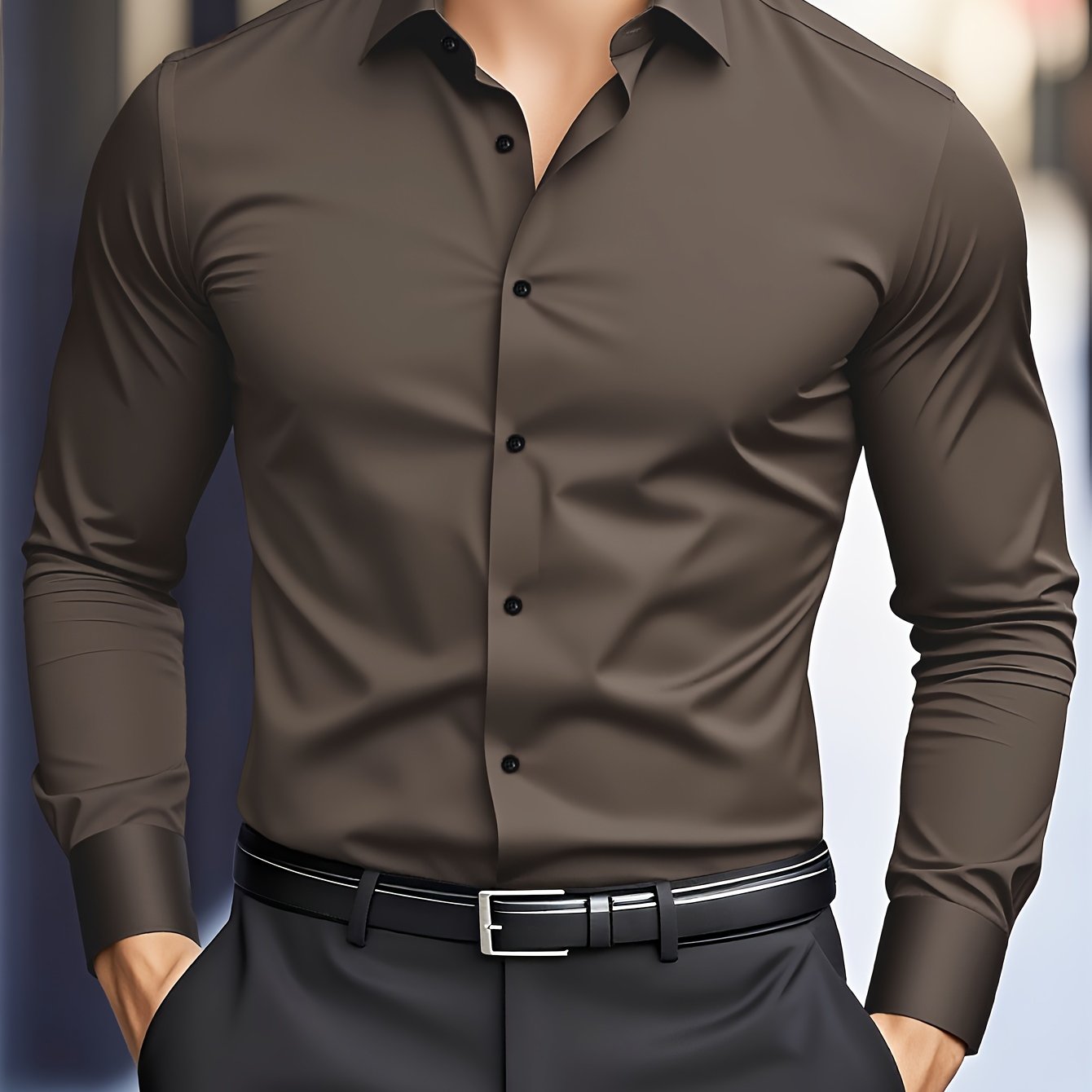 TEMU 남성용 연회 및 정장용 정장 비즈니스 셔츠, 단색 긴팔 셔츠