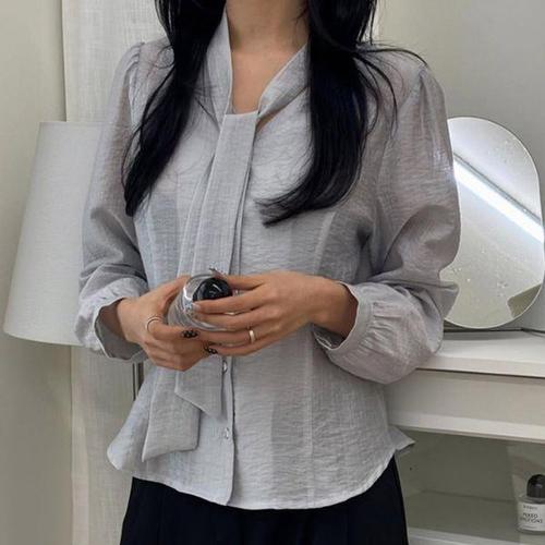 [유야]투웨이 스카프 시스루 셔츠 블라우스 쉬폰 허리끈 남방 -NB0116H- 빅사이즈 루즈핏 여성 봄 여름