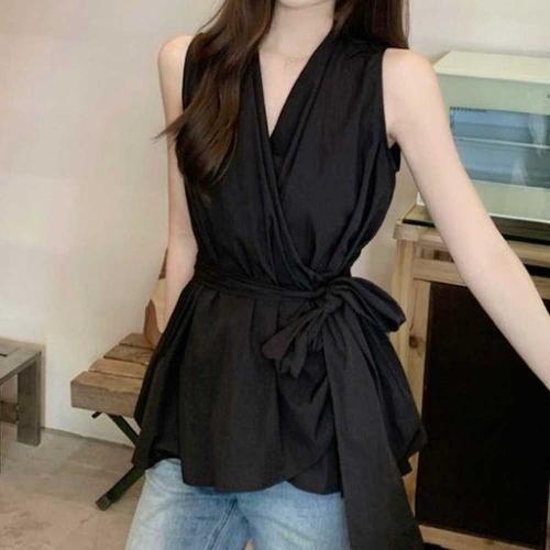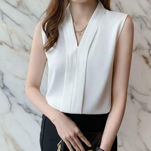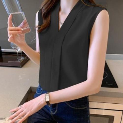 [신상오픈런]여성용 브이넥 민소매 블라우스 오피스 스타일