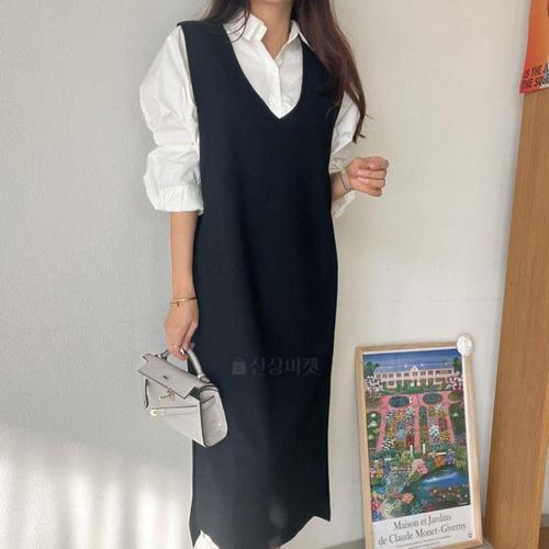 여자 브이넥 슬림핏 니트 골지 스타일 나시 원피스