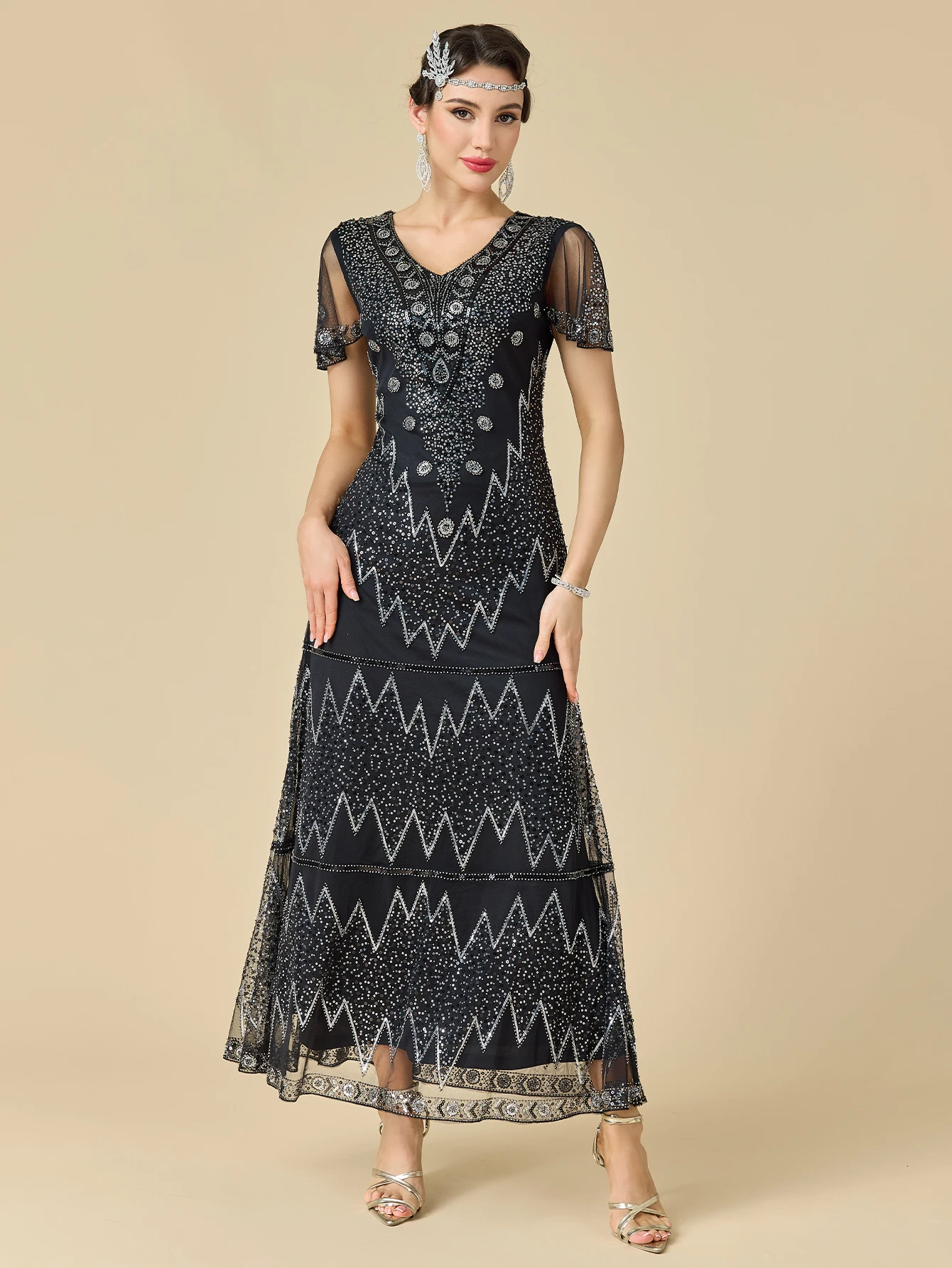여성용 플래퍼 드레스 1920년대 V넥 비즈 장식 프린지 그레이트 개츠비 드레스 의상 드레스 가운