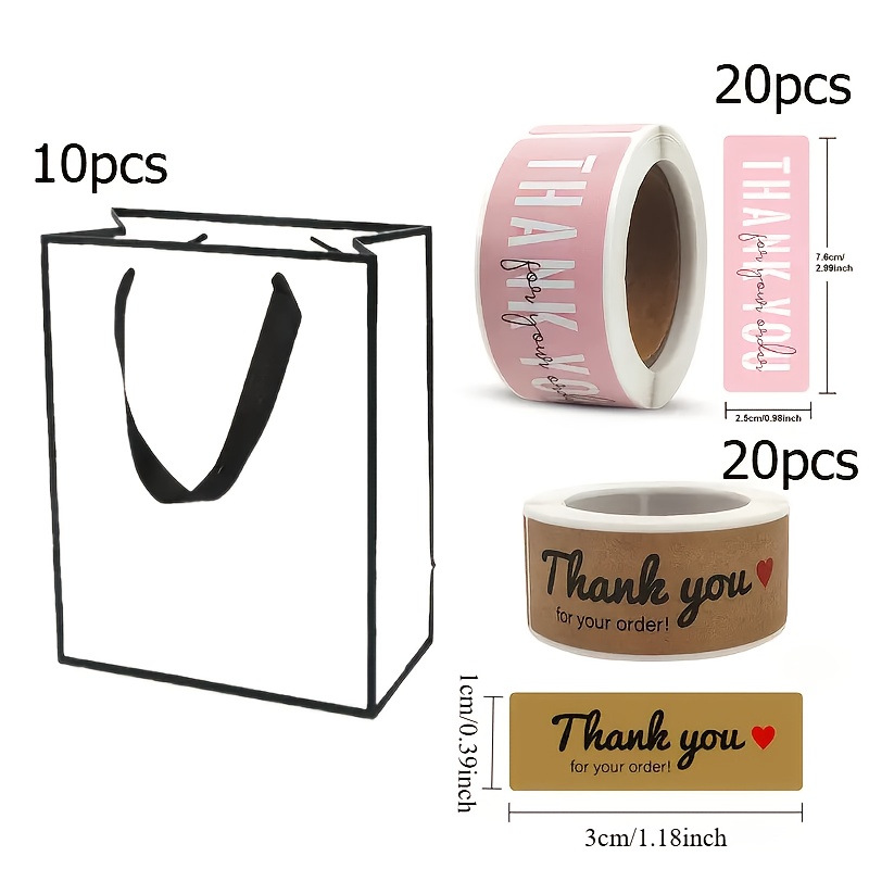 TEMU 50개입 우아한 화이트 블랙 테 크래프트 종이 선물 가방 & 핑크 브라운 감사 스티커 - 종이 포장, 블랙 테, T-핸들 클립, 웨딩, 생일, 추수감사절 및 고급 이벤트용, 내구성 있는 캐리 디자인, 세련된 외관, 완벽한 선물 포장 가방, 결혼식 선물,파티 호스트,이벤트 플래너