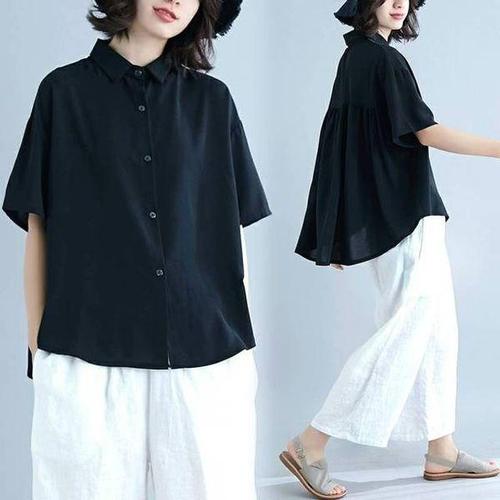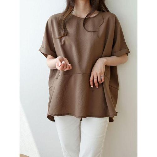 [샵앤]국산 여성 라운드 뒷절개 루즈핏 반팔 블라우스 AMI-WBL-5219-블랙