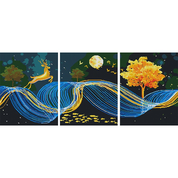 황금사슴 노래 (3단세트)(캔버스형) 보석십자수 40x50