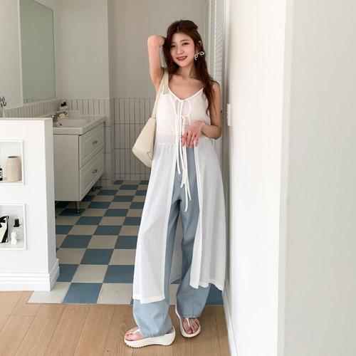 [셀럽하우스]빅사이즈 OPKO0665 가디건 바캉스메쉬 롱 조끼 0321 썸머 그물