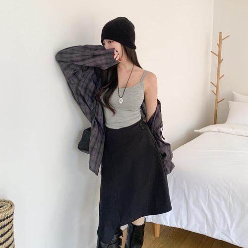 [하프클럽/]여성 SS 롱슬리브 빅사이즈 볼드숄더 격자 셔츠