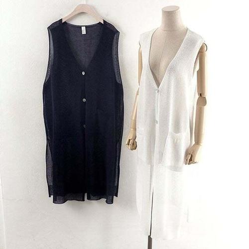 [셀럽하우스]그물 GQPO0741 망사 조끼 빅사이즈 짜임 롱 여성의류 브이넥