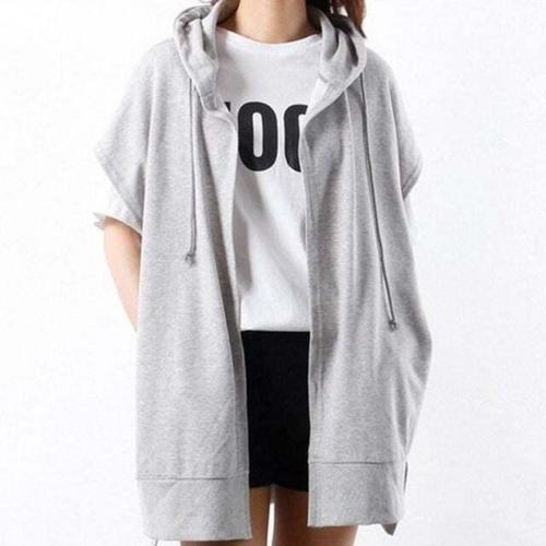 여름 중년여성 후드 바람막이 조끼 빅사이즈 무지 얇은 루즈핏 집업 베스트 자켓 아웃도어 엄마룩