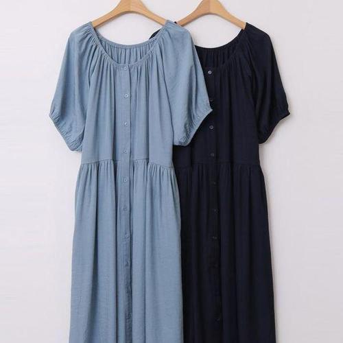 [셀러허브_여성트랜드패션]빅사이즈반팔원피스 V052L508 메모리단추맥시원피스 WB