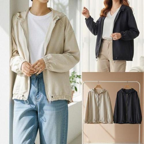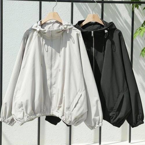 Makone 남여공용 후드 바람막이 점퍼 속건 캐주얼 루즈핏 자외선차단 아우터 솔리드 심플 커플 집업