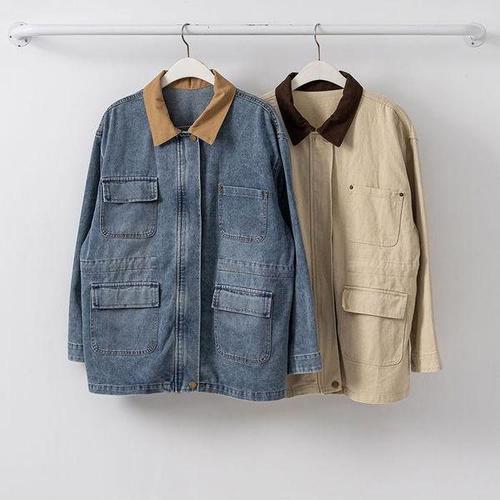 [다잇템] 여성 드로우코드 작업자켓 멀티포켓 컬러카라 빅사이즈 자켓