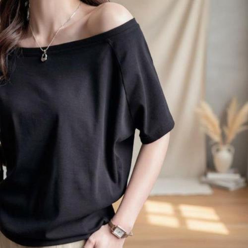 [셀러허브_여성트랜드패션]여성 어깨트임 빅사이즈 클래식 반소매 티셔츠
