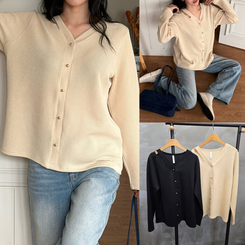 [옷자락] [시즌오프]데일리룩 카라넥 무지니트 빅사이즈 가을 가디건_5