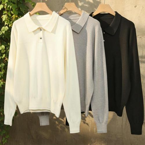 쑤야 1768 여성 캐주얼 긴팔 빅카라 니트 티셔츠 스웨터