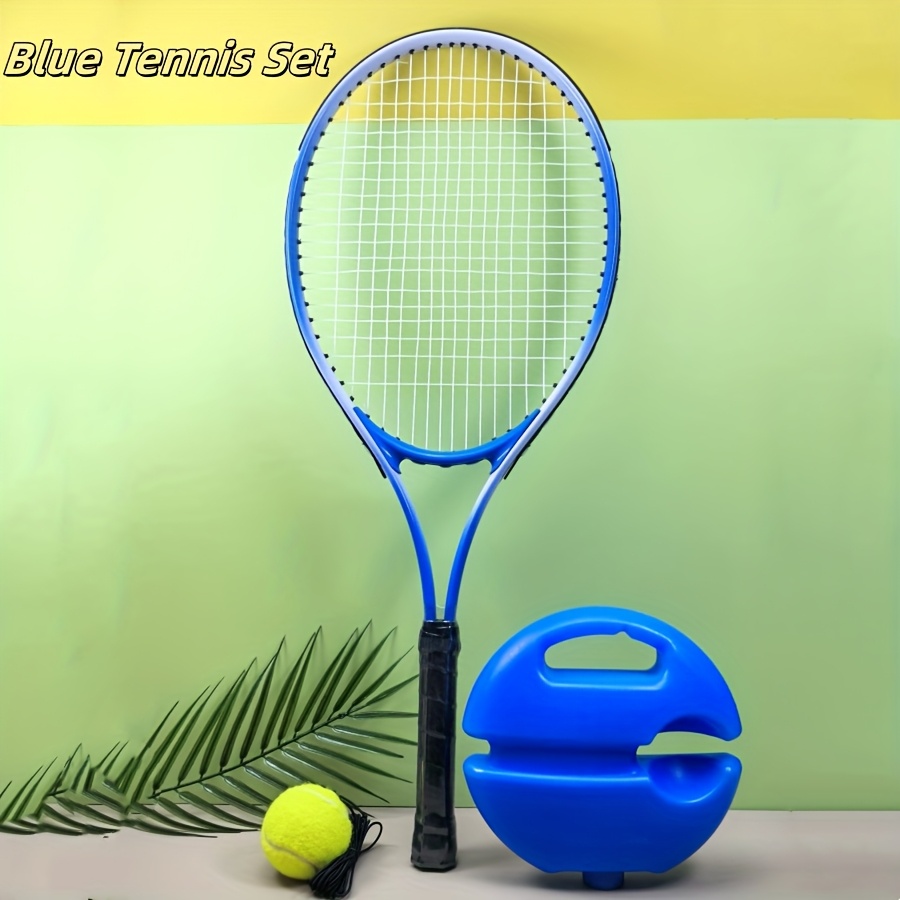TEMU 싱글 테니스 훈련 세트 (리바운더 포함), 공 줍줍 없이 혼자서도 사용 가능한 테니스 트레이너, 높은 탄성 스트래핑 및 나사산 디자인의 내구성 및 내마모성 테니스 장비 세트 베이스
