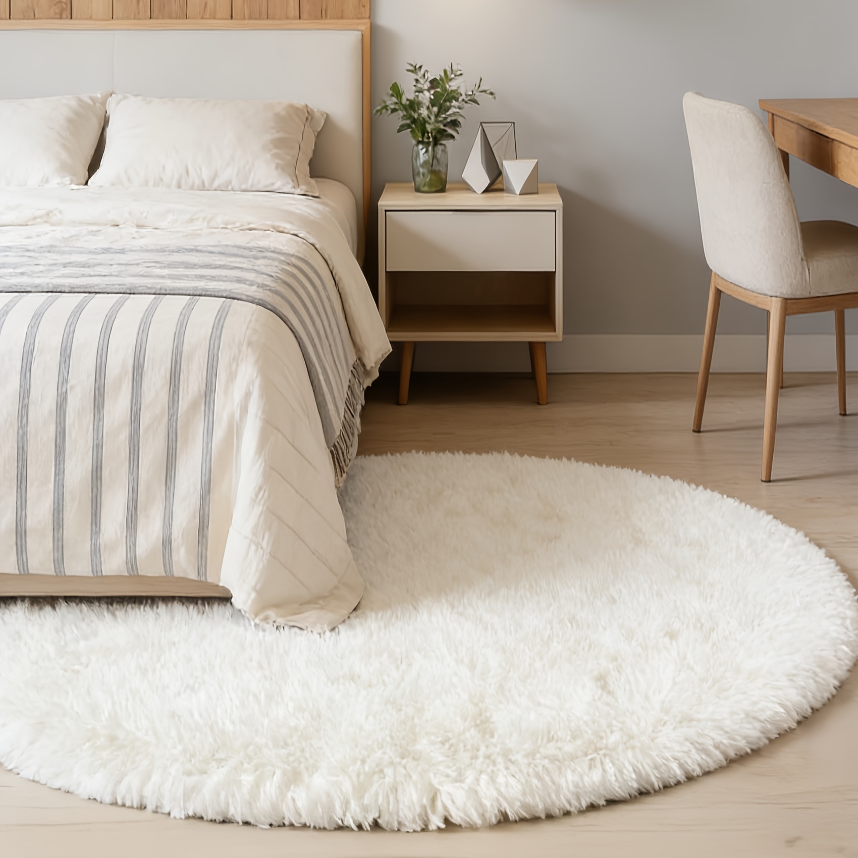TEMU 오프화이트, 원형, 긴털 플러시 카펫 1개 | 부드럽고 푹신한 원형 러그 | 거실, 침실 및 서재 장식에 이상적 | 홈 데코 영역 러그