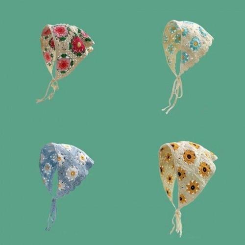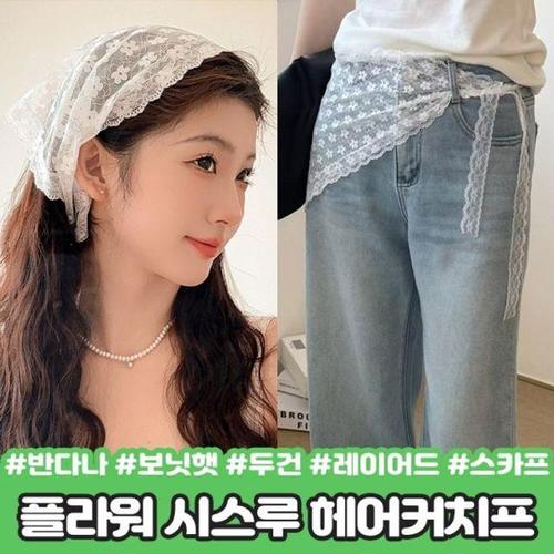레이스 플라워 커치프 삼각 두건 망사 시스루 스카프 헤어 반다나 보넷 헤어커치프 웨딩촬영