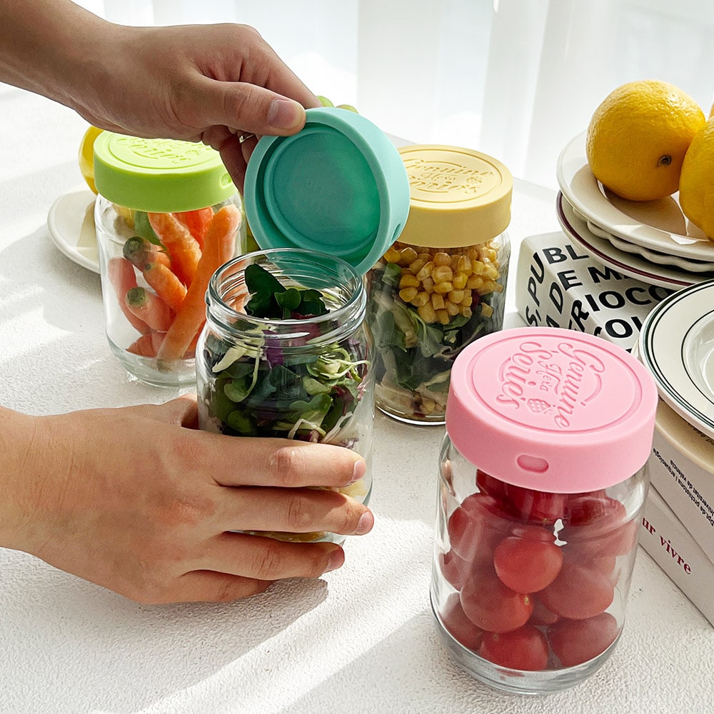 헥사 제뉴엔실리콘뚜껑 샐러드 밀프랩 보틀 유리병 450ml SK400S