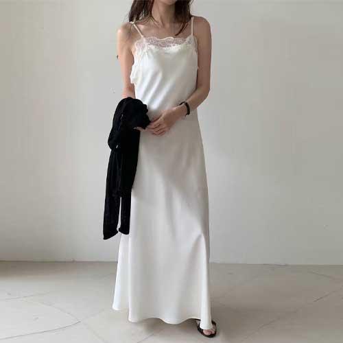 [릴룸]부두아룩 레이스 샤틴 롱원피스