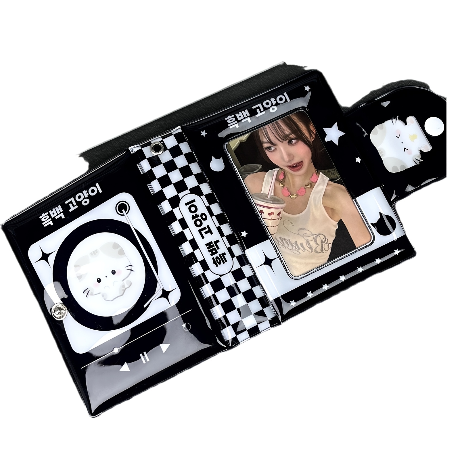 TEMU 1개 귀여운 검은 고양이 Kpop 포토카드 앨범 - 할로우 디자인 아이돌 카드 홀더, 휴대용 수집용 카드 북 (음악 고양이 테마)