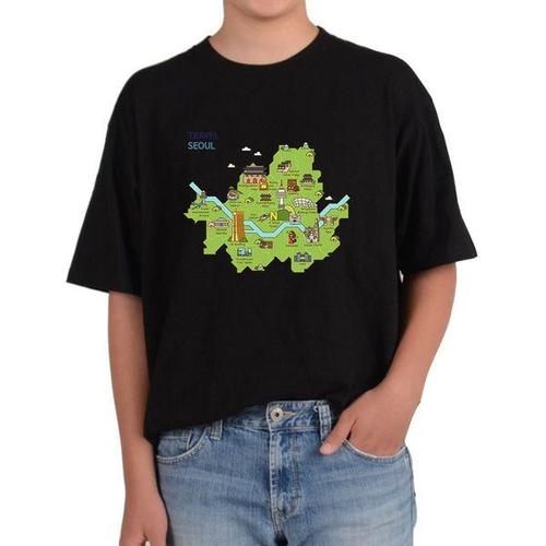 [에이치플러스몰]오버핏반팔티 서울여행 K문화 K뮤직 한강 서울지도 서울 전사이즈
